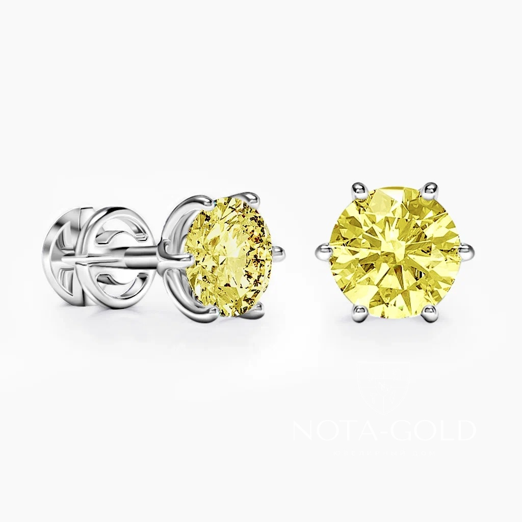 Серьги пусеты-гвоздики с желтыми бриллиантами 0,5 ct 5 мм (Вес 1,5 гр.)
