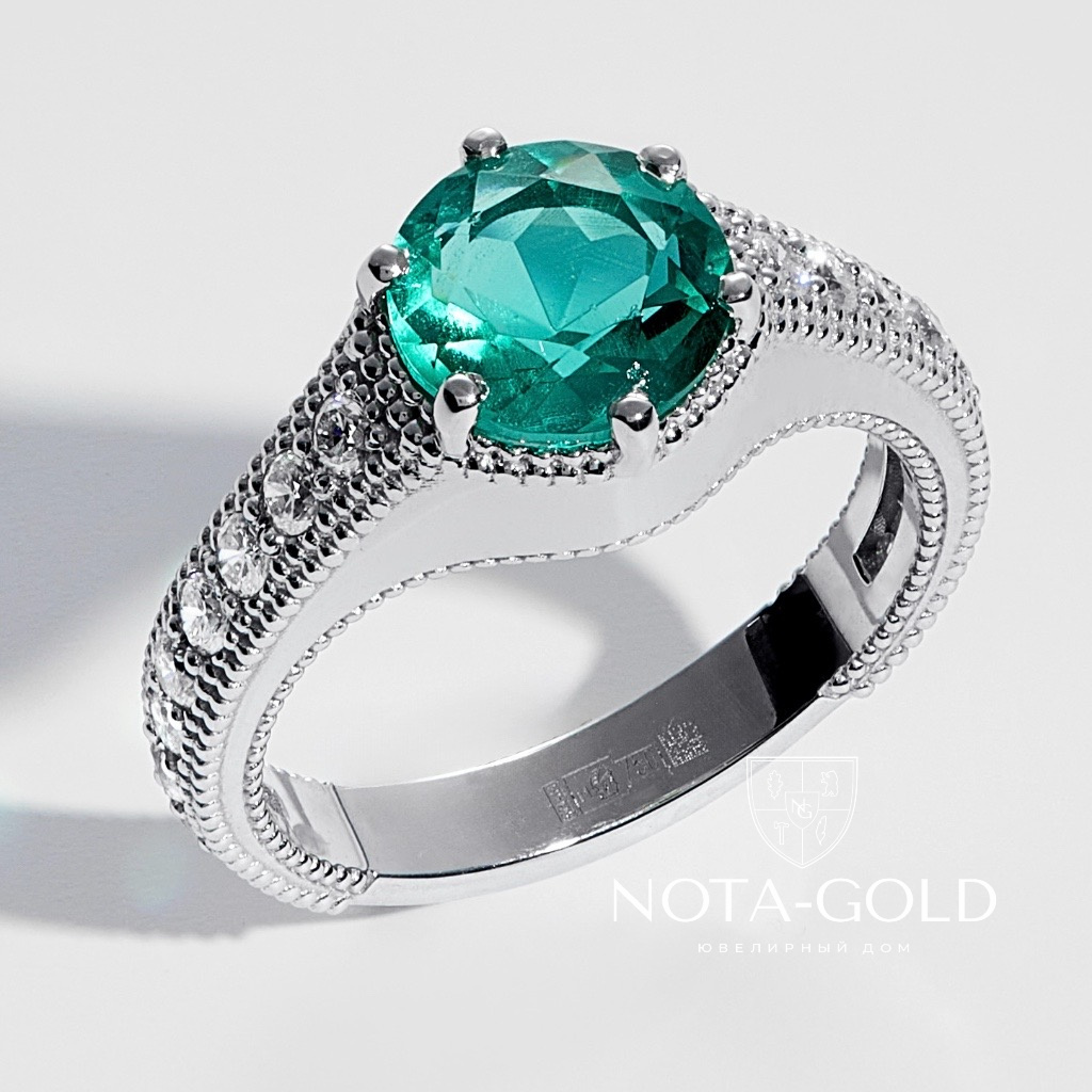 Женское кольцо из белого золота с бриллиантами и камнем Парайба (Вес 4,7 гр.)