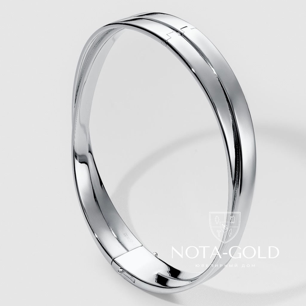 Жесткий браслет из белого золота Переплетение двух полос в одну (Вес 35 гр.)