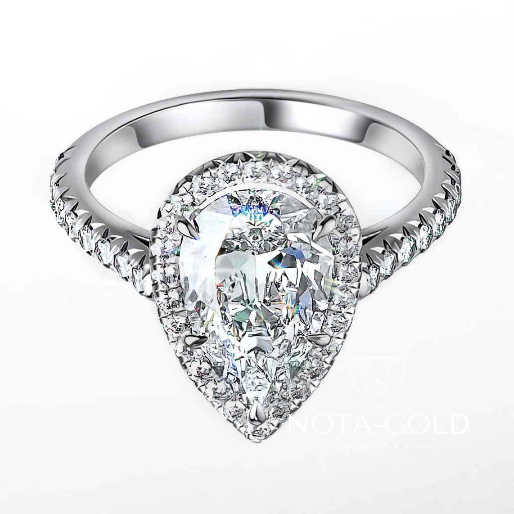 Женское Помолвочное Кольцо "Слеза Радости" — Лабораторный Бриллиант Груша