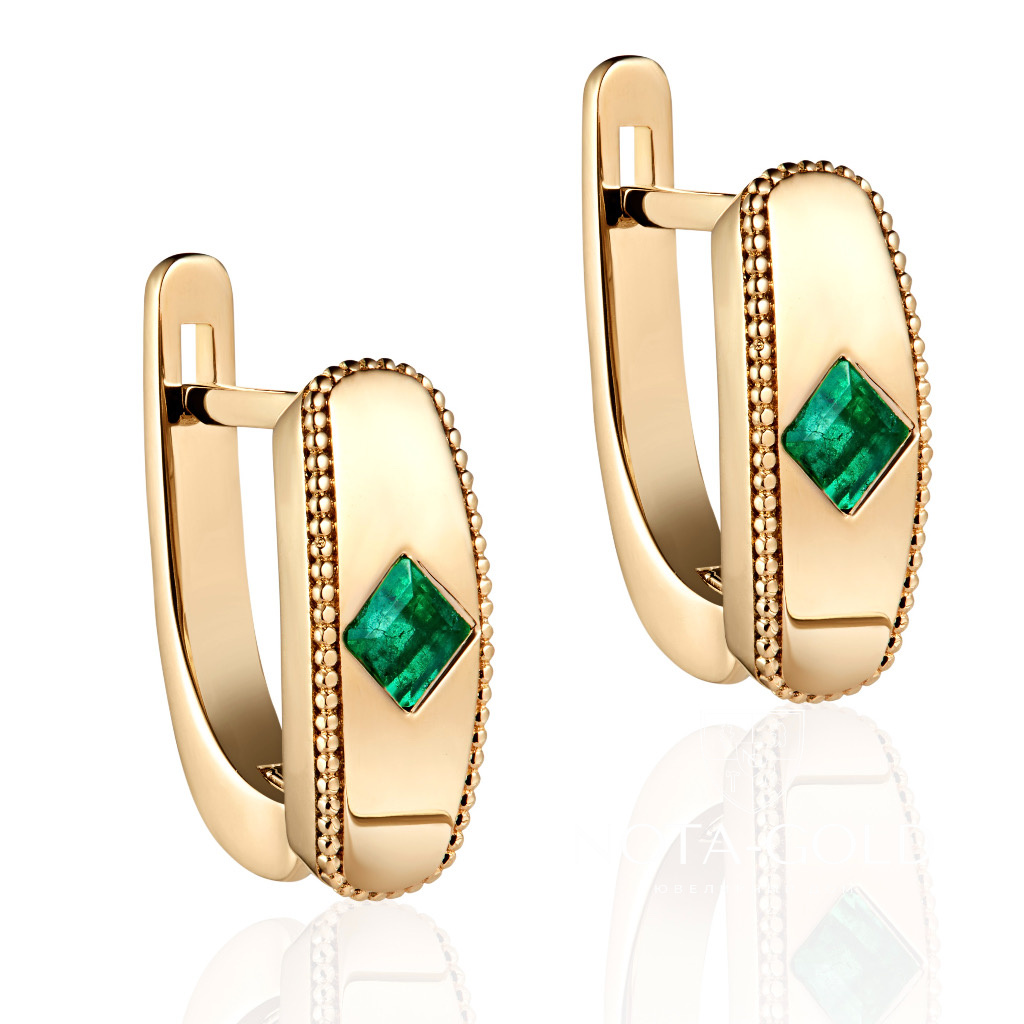 Женские серьги из желтого золота с изумрудами квадратной огранки (Вес 4,9 гр.)