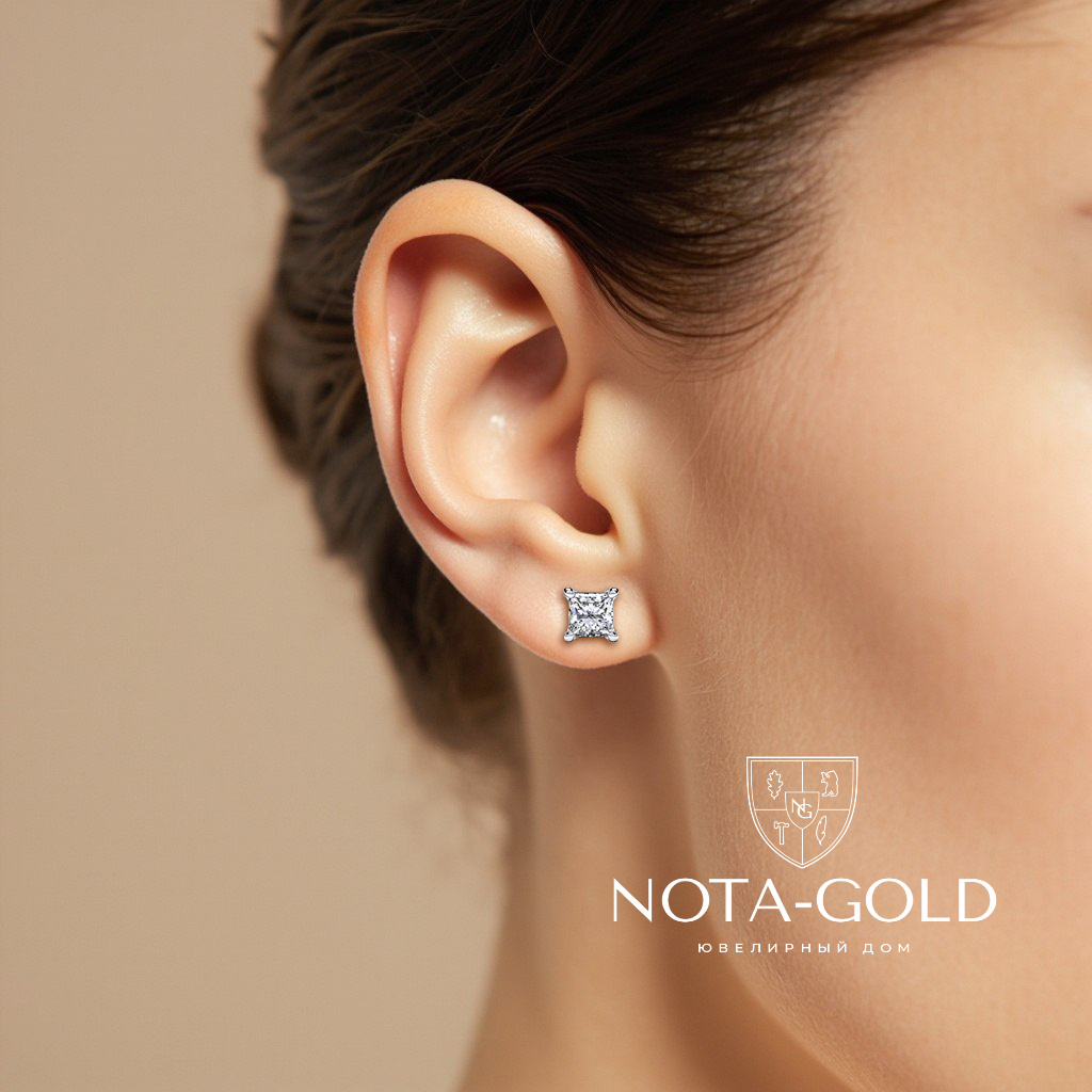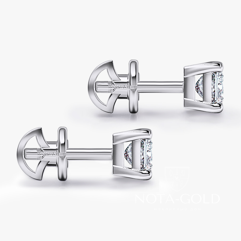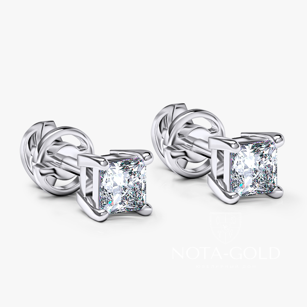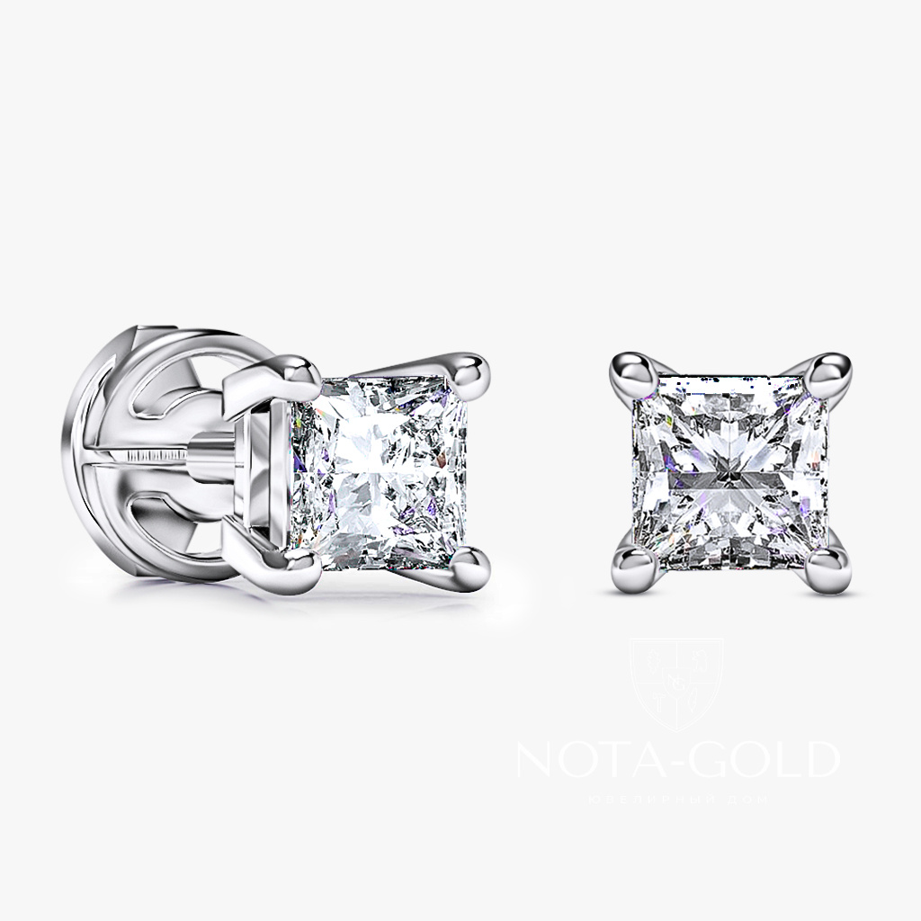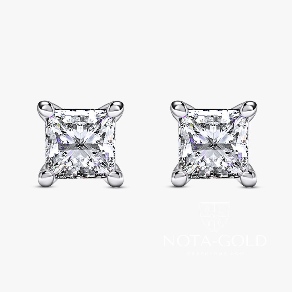 Женские серьги пусеты из белого золота с бриллиантами огранки Принцесса (Вес 1,8 гр.)
