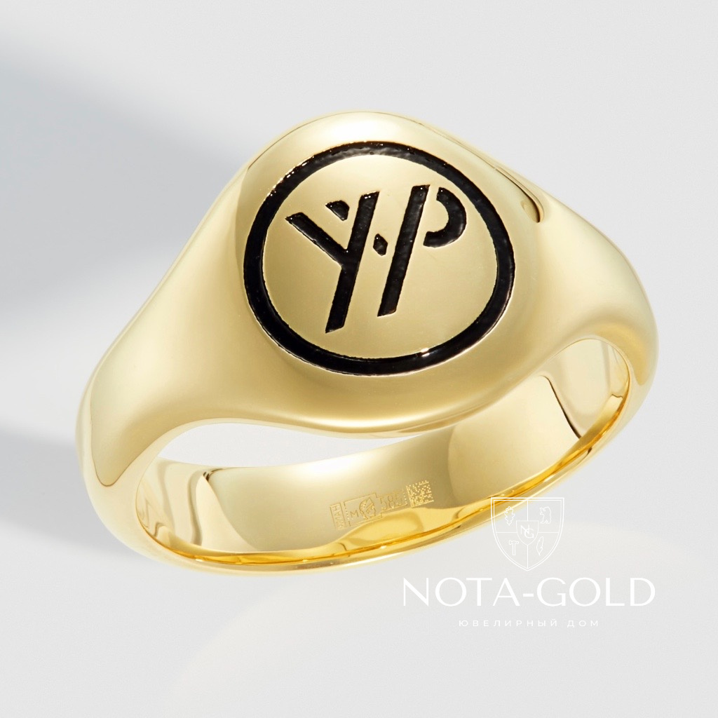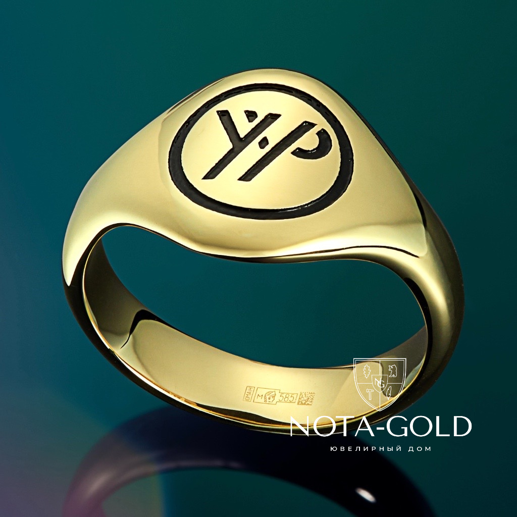 Кольцо печатка из жёлтого золота с обтекаемой площадкой и личным символом (Вес 12 гр.)