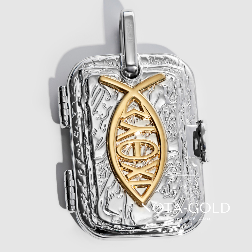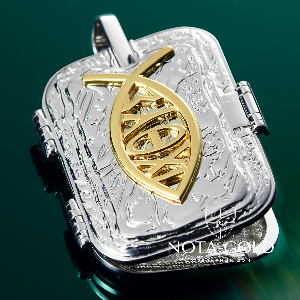 Православная Нательная Ладанка-Жетон — "Рыба ИХТИС"Представляем уникальную нательную ладанку, выполненную в формате открывающегося жетона. Это не просто украшение, а мощный духовный оберег, сочетающий классический православный символизм и высококлассное ювелирное исполнение из двух видов золота.