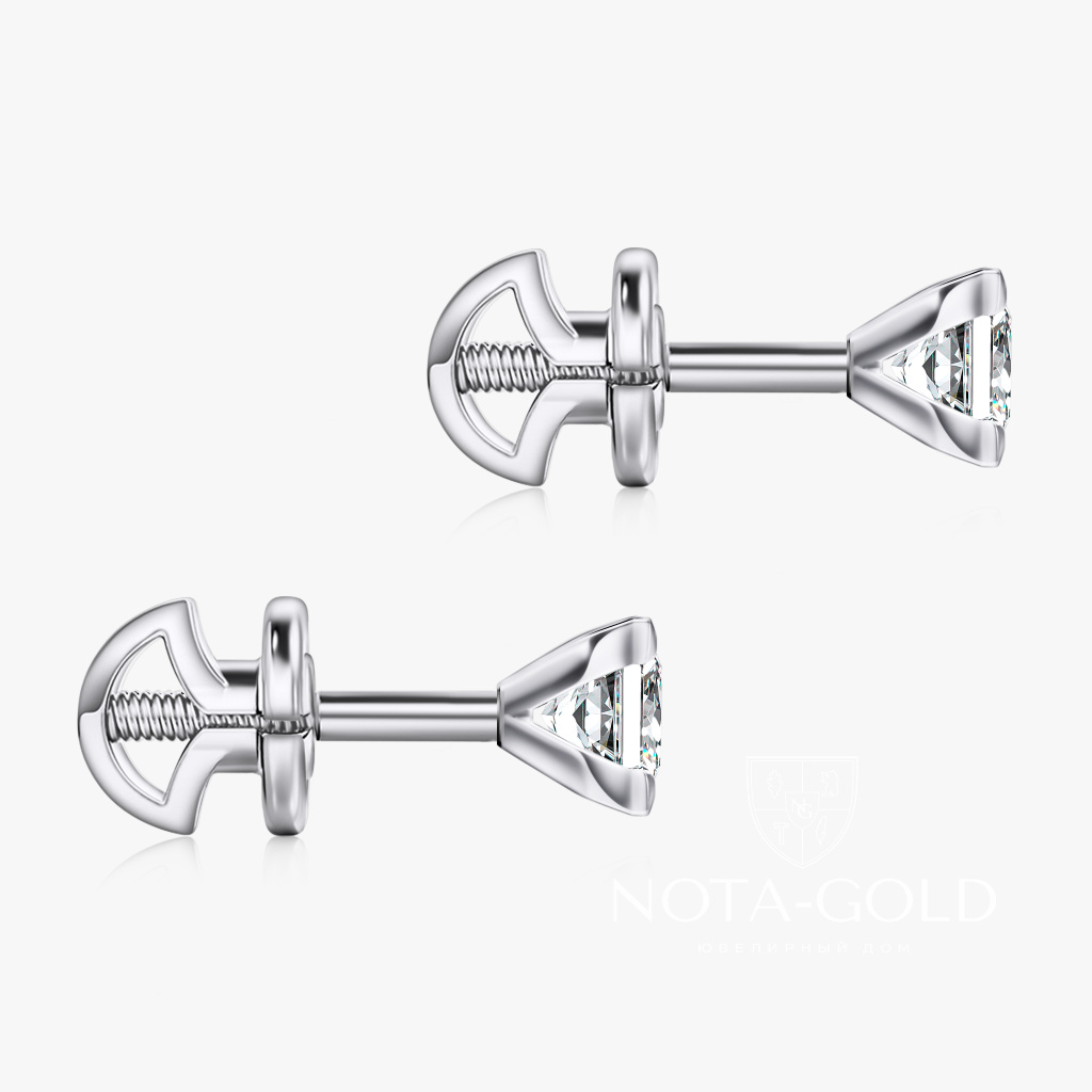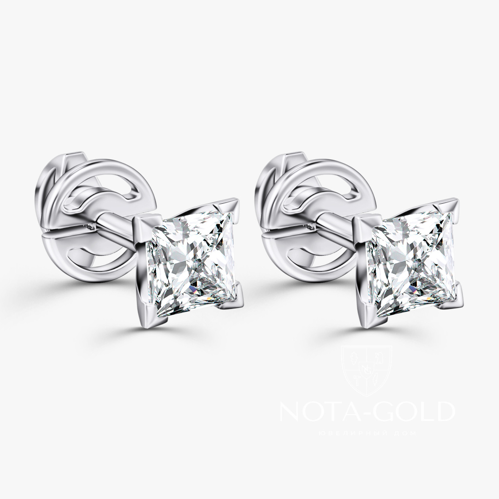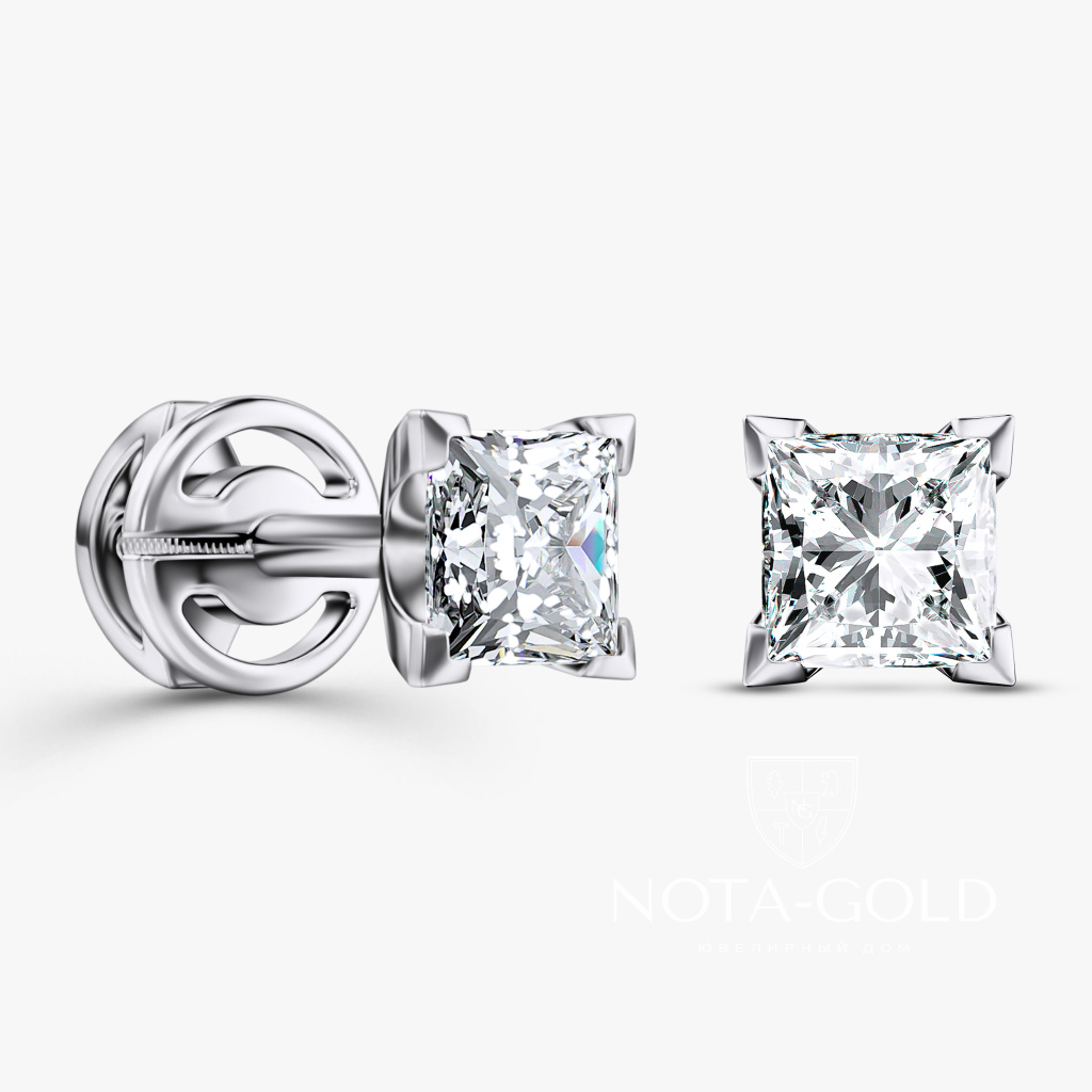 Серьги пусеты из белого золота с бриллиантами Принцесса (Вес 1,1 гр.)