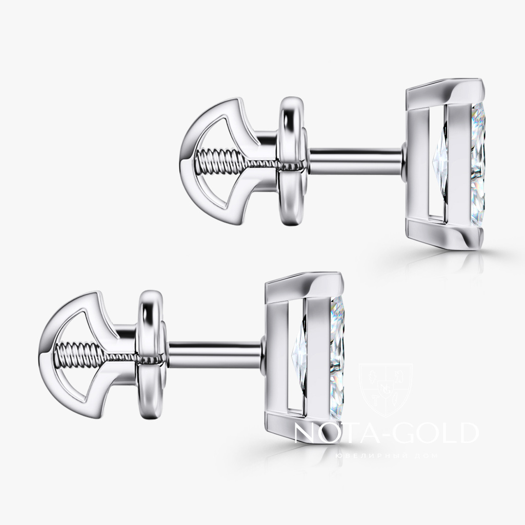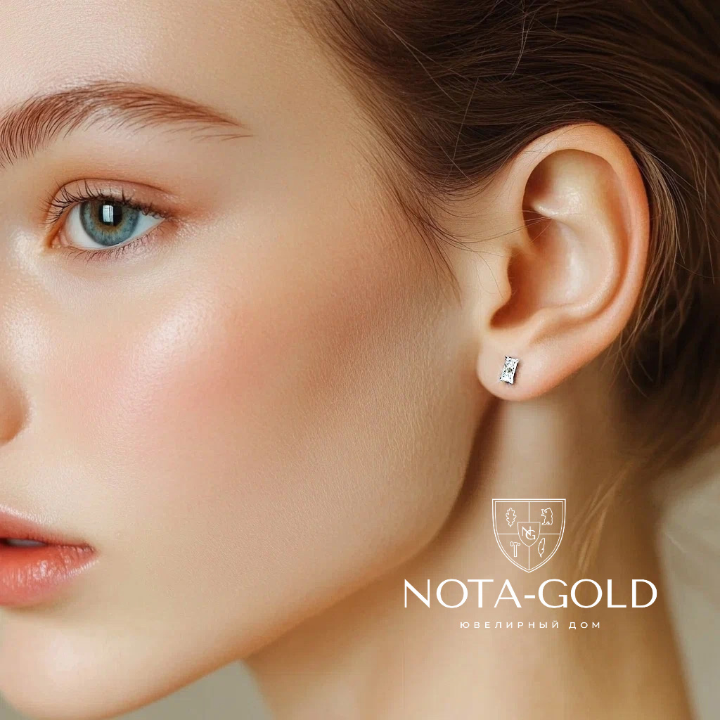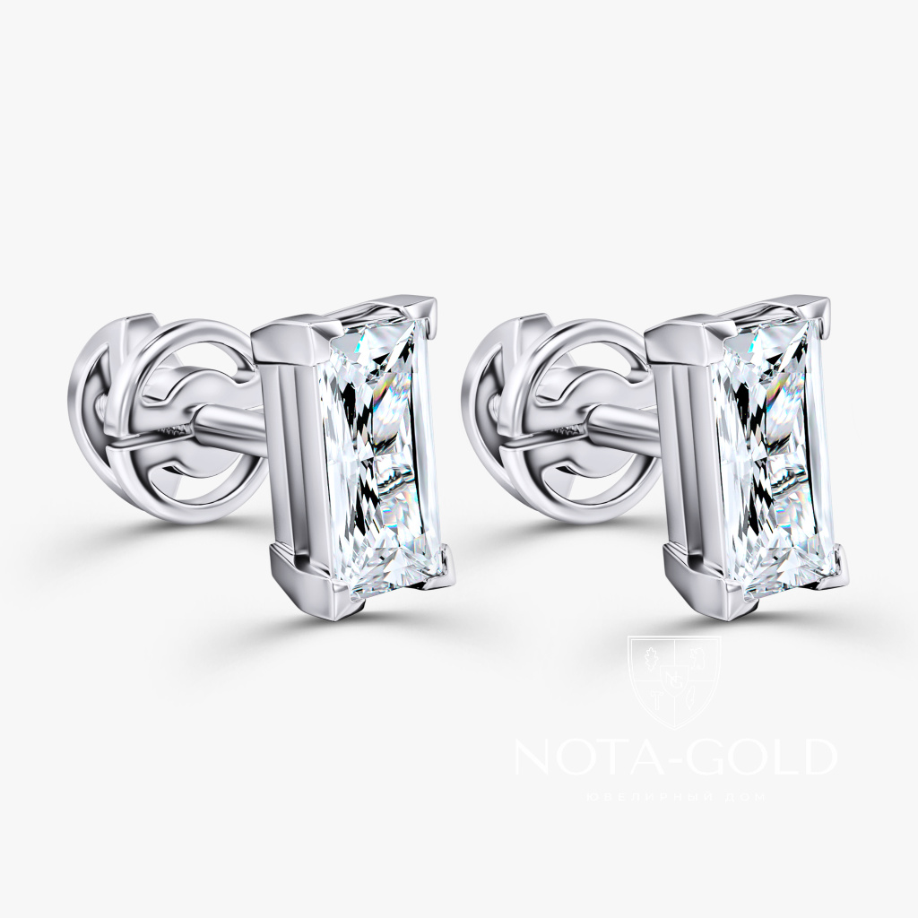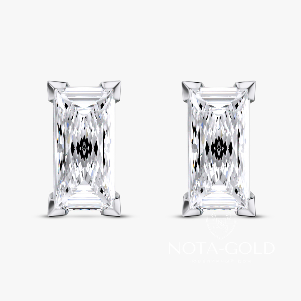 Серьги пусеты из белого золота с бриллиантами формы Багет (Вес 1,3 гр.)