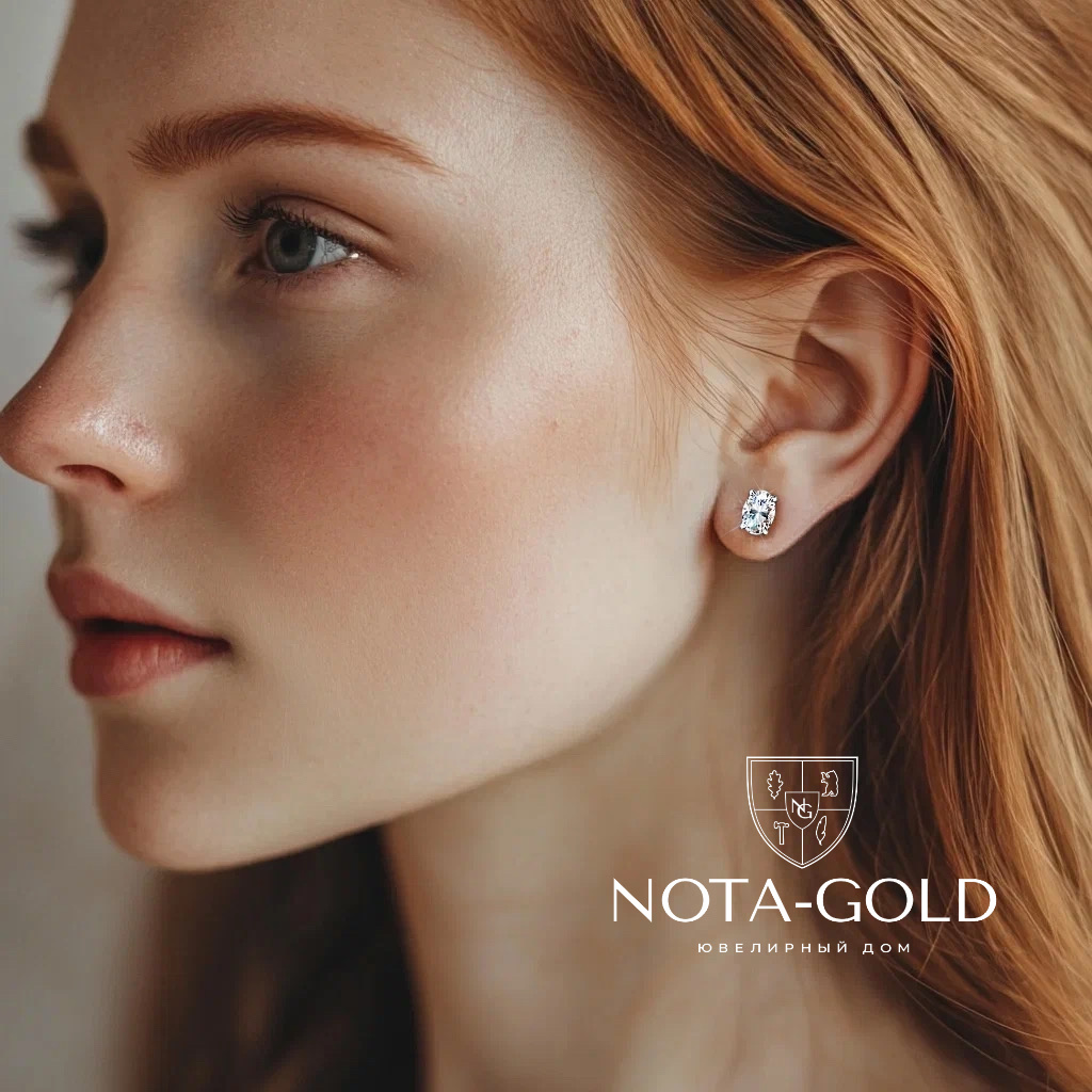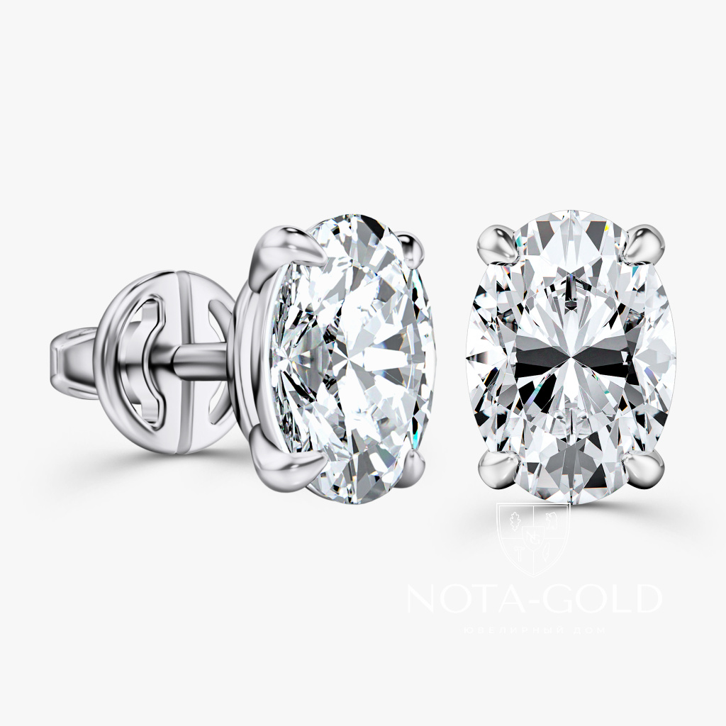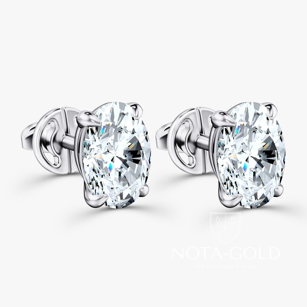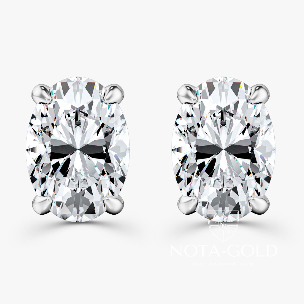 Нежные и романтичные серьги пусеты с овальными бриллиантами прекрасное дополнение образа.