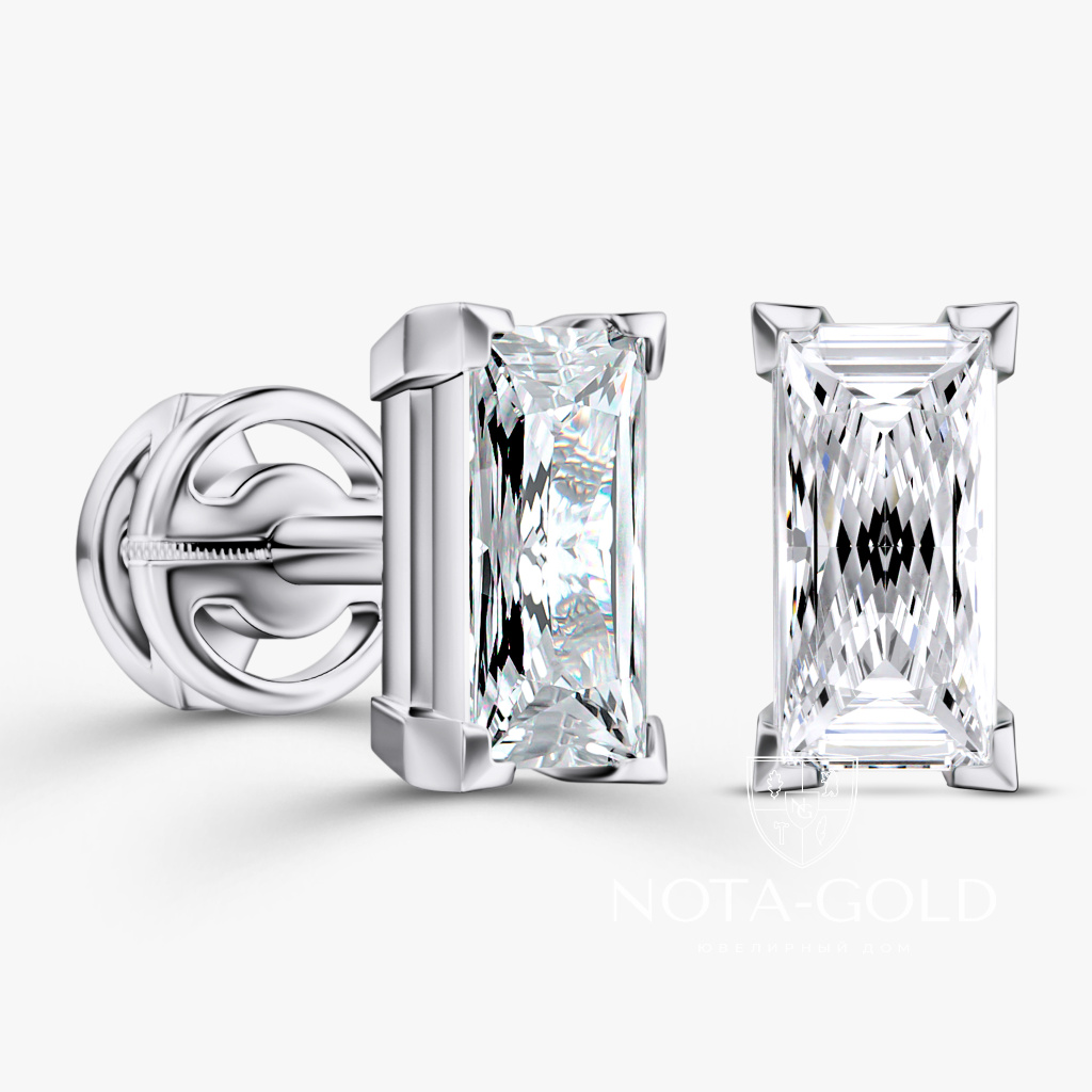 Серьги пусеты из белого золота с искусственными бриллиантами формы Багет (Вес 1,3 гр.)
