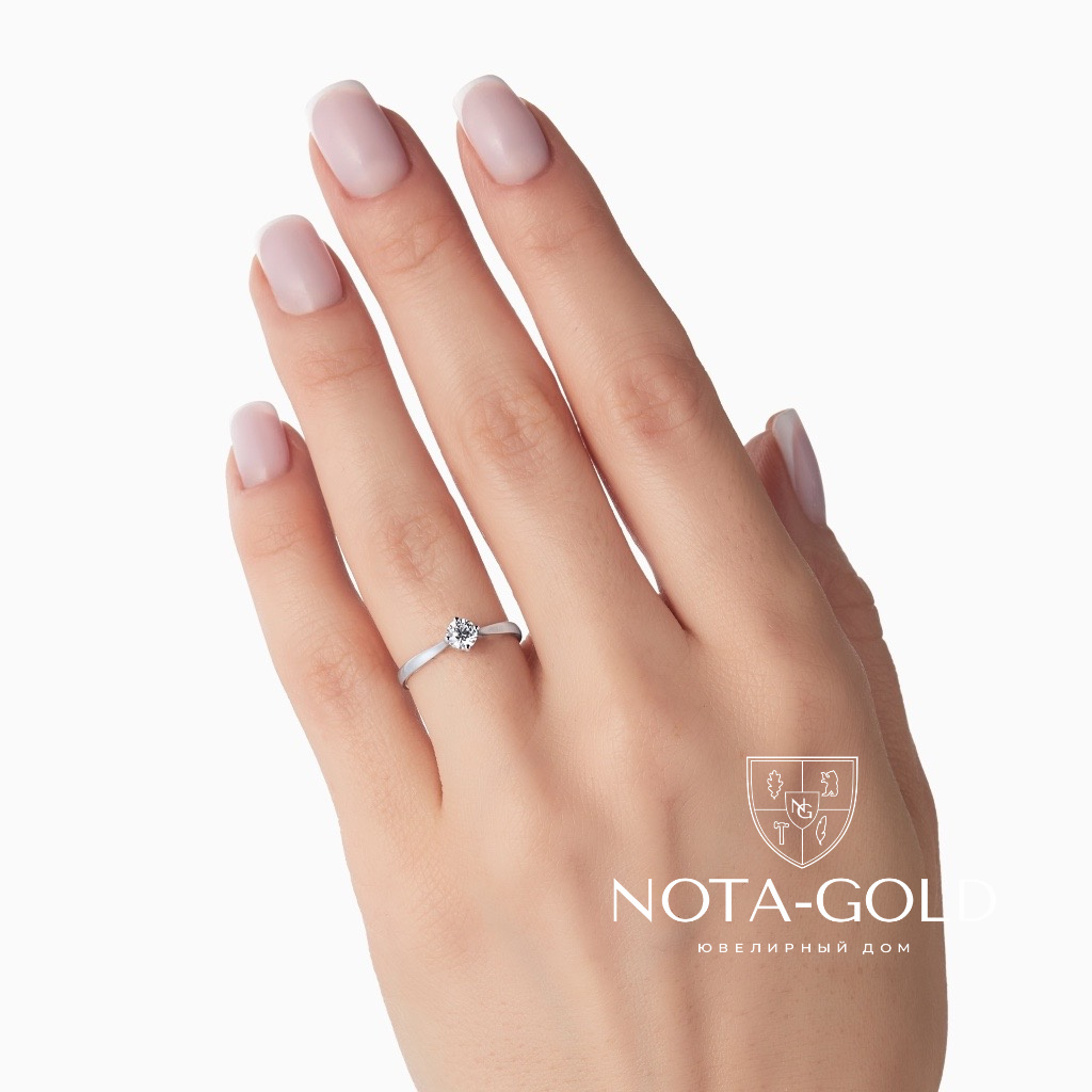 Помолвочное кольцо из белого золота с искусственным бриллиантом 4мм 0,24ct (Вес 1,2 гр.)