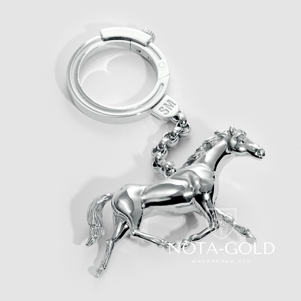 Брелок для ключей Рысак из серебра с гравировкой (Вес 34 гр.)