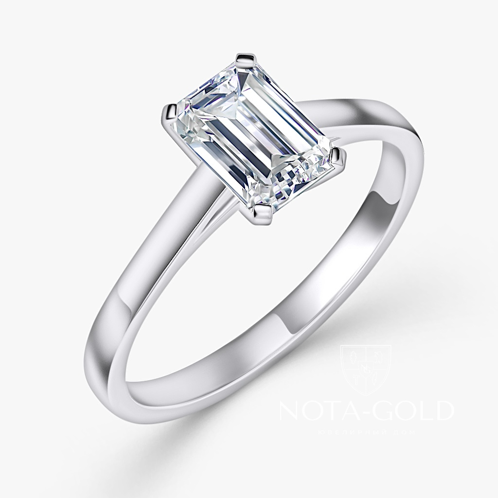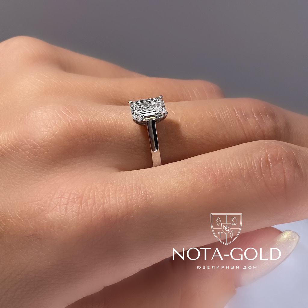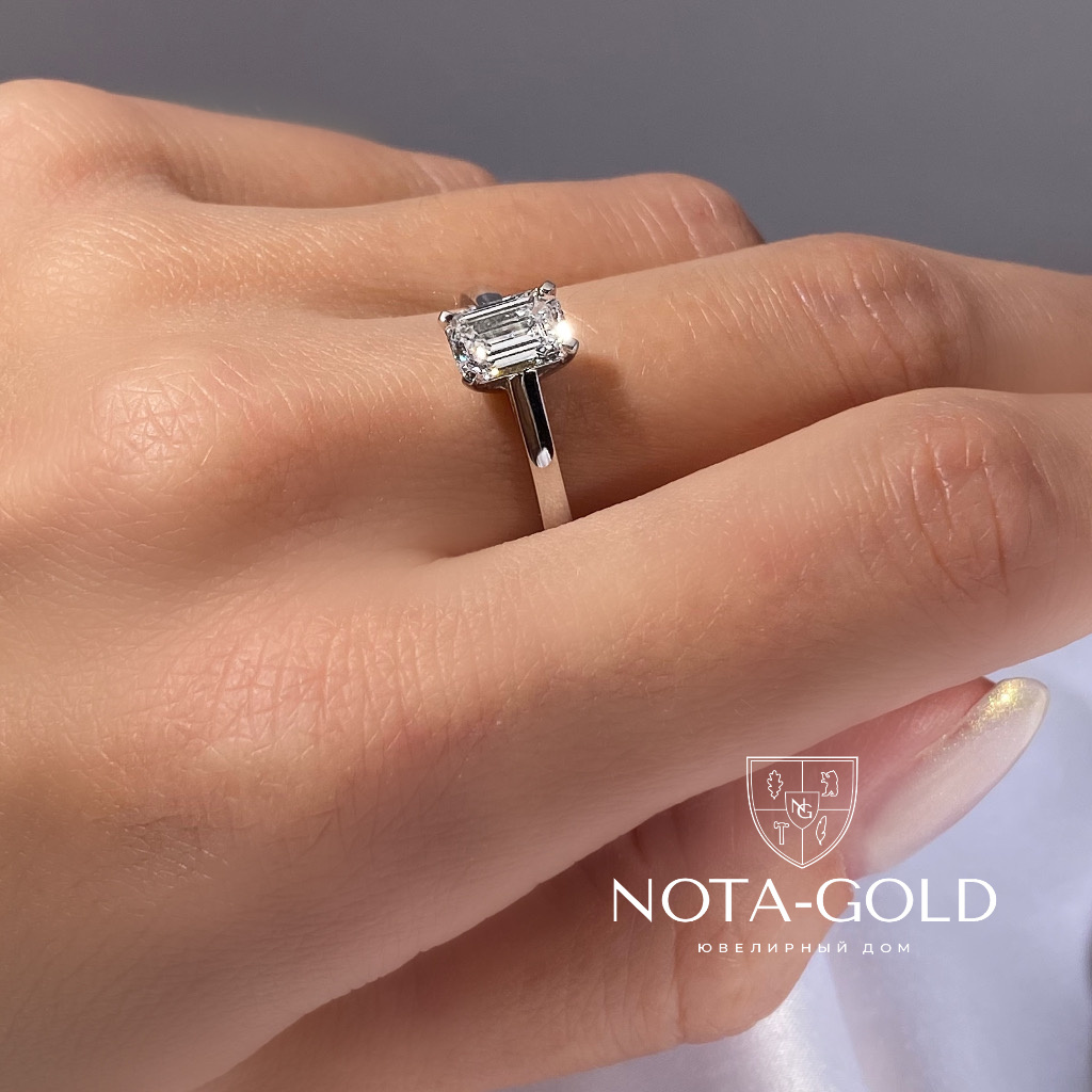 Женское кольцо из белого золота с лабораторным бриллиантом Октагон изумрудной огранки (Вес 2,8 гр.)