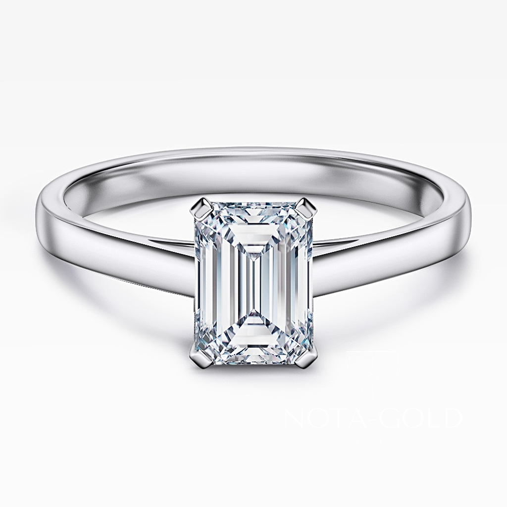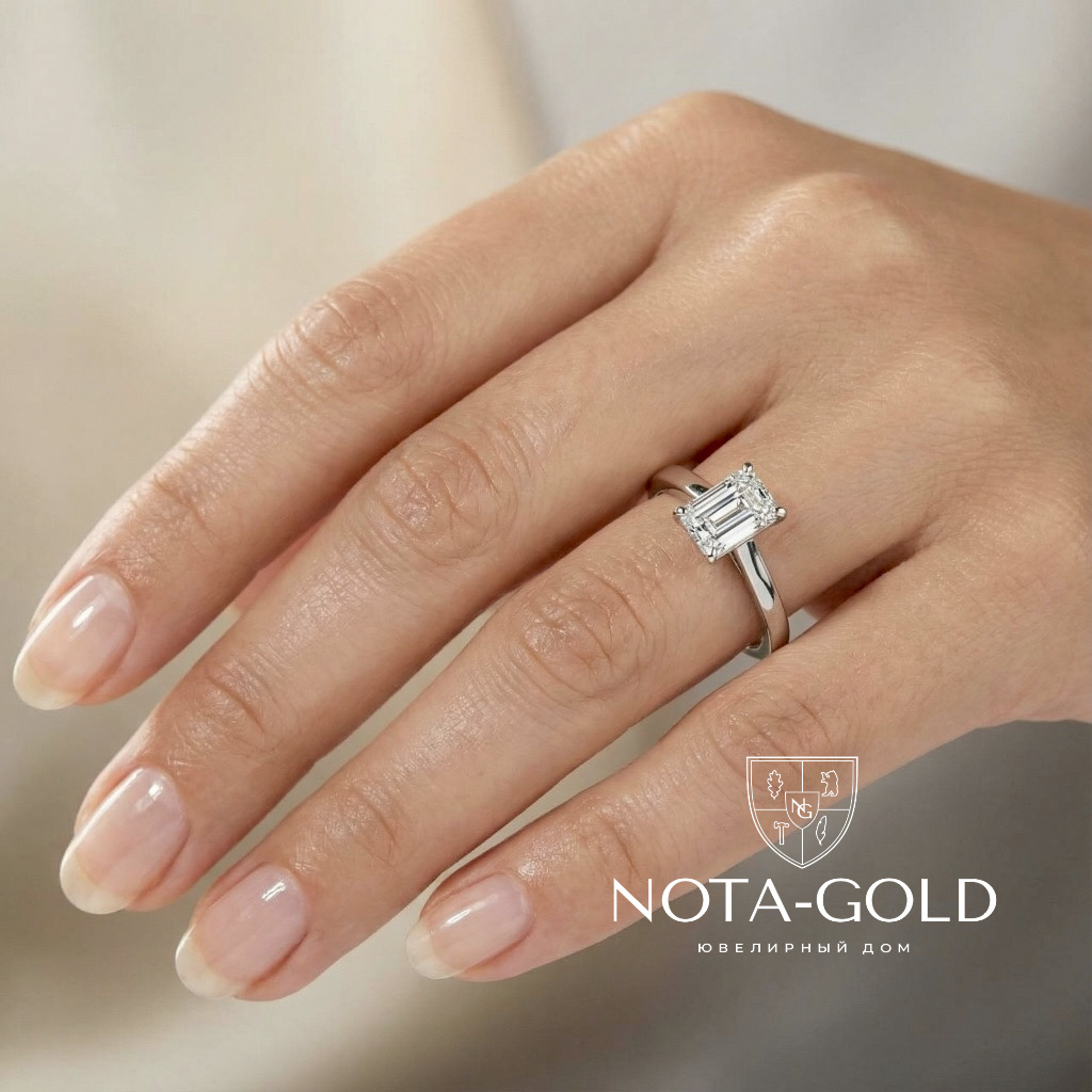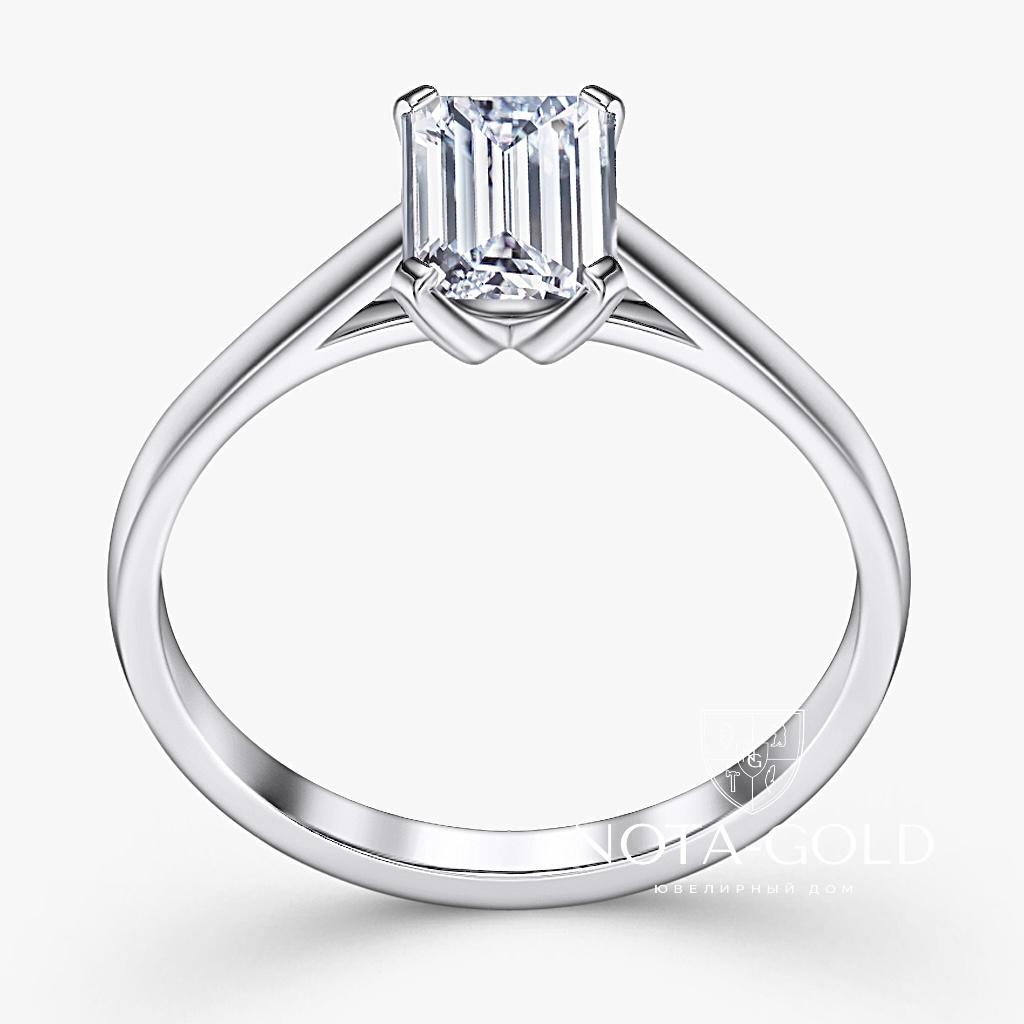 Женское кольцо из белого золота с лабораторным бриллиантом Октагон изумрудной огранки (Вес 2,8 гр.)