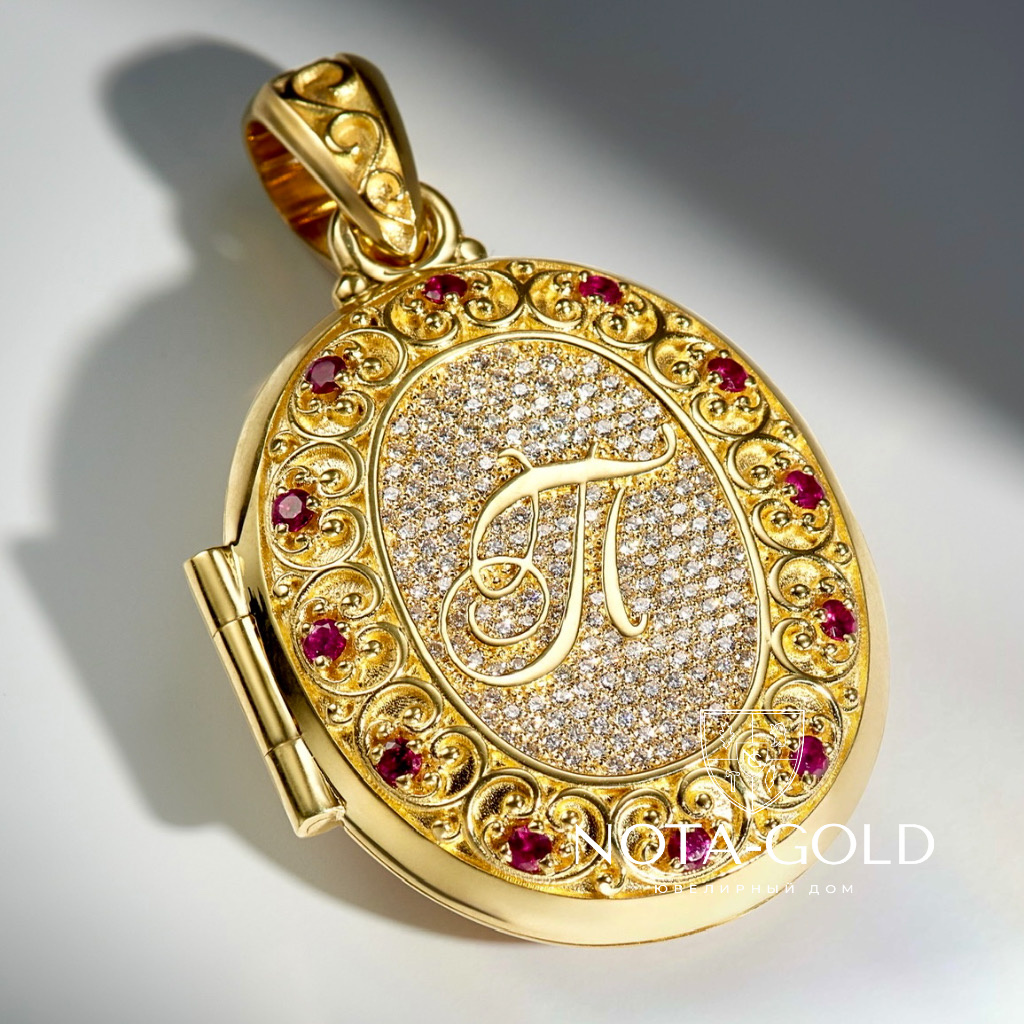 Открывающийся медальон из желтого золота с личной монограммой буква П.