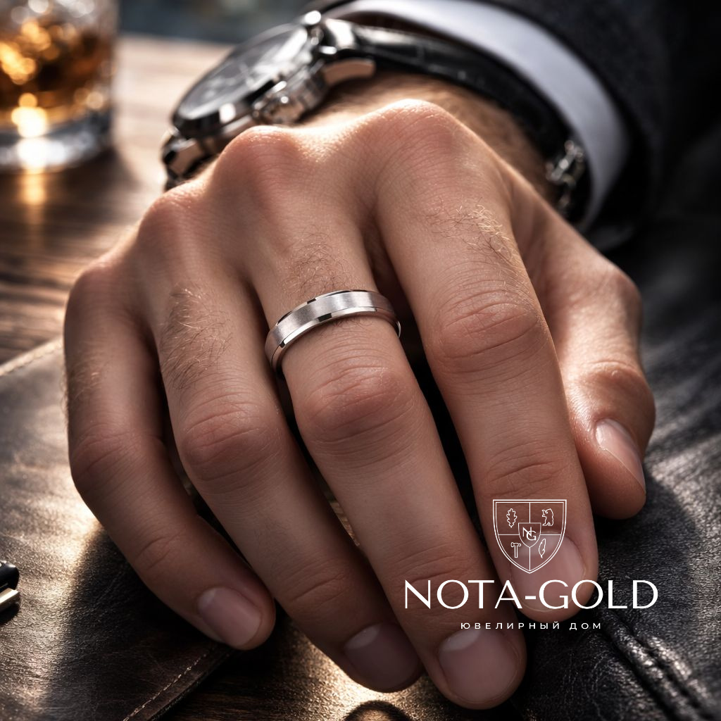 Благодаря минималистичному дизайну и сочетанию матовой и полированной фактур, это кольцо гармонично дополнит любой образ: от строгого делового костюма до повседневного гардероба. Индивидуальное изготовление: Мы можем выполнить данную модель в любом размере, а также нанести памятную гравировку на внутреннюю сторону кольца. Хотите подчеркнуть свою индивидуальность этим статусным аксессуаром? Свяжитесь с нами для уточнения срока изготовления под ваш размер.