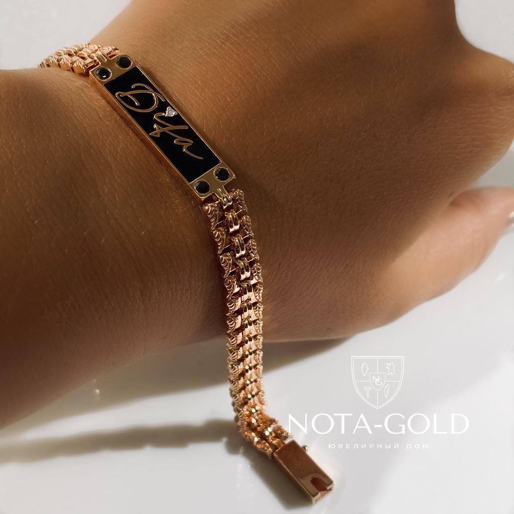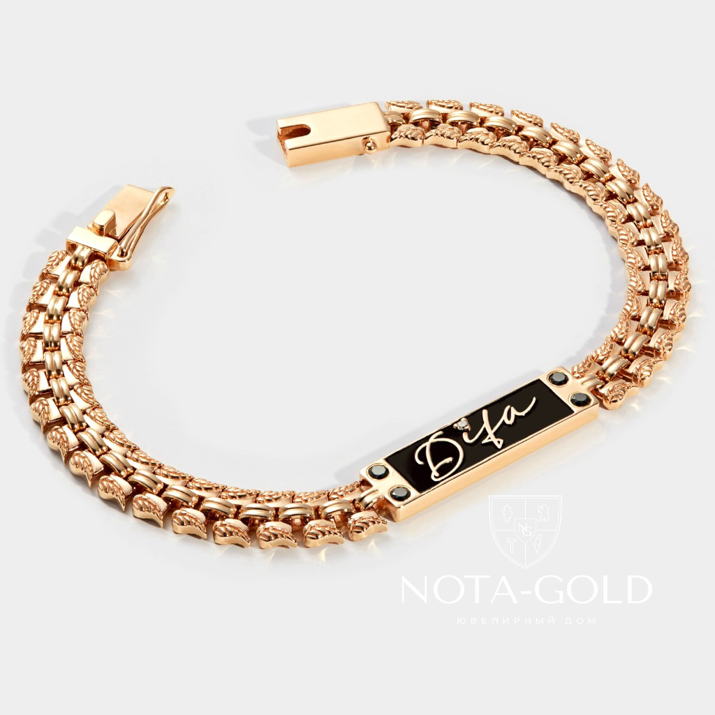 Мужской браслет с личной символикой из красного золота с черными бриллиантами (Вес 26 гр.)