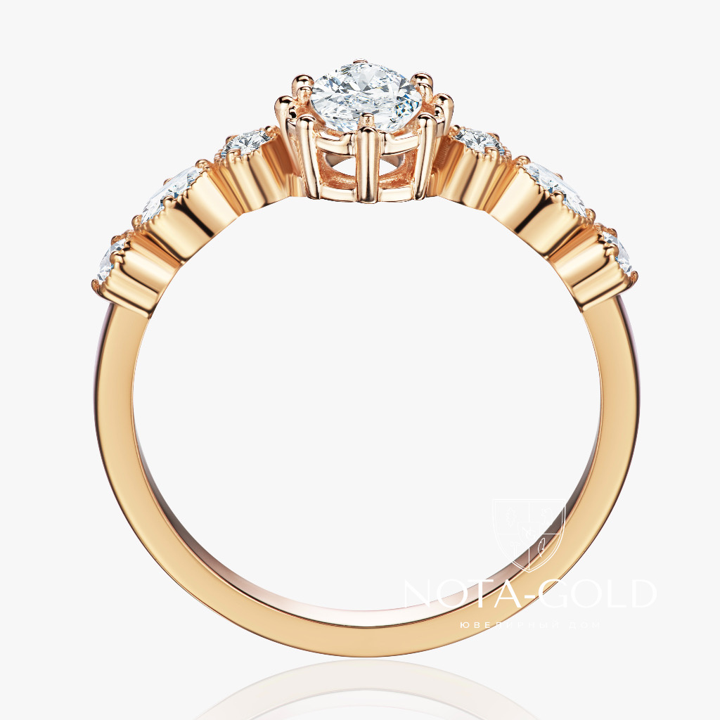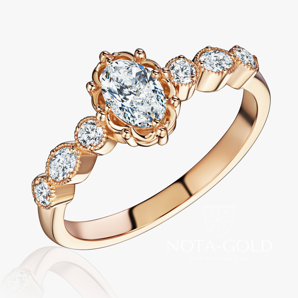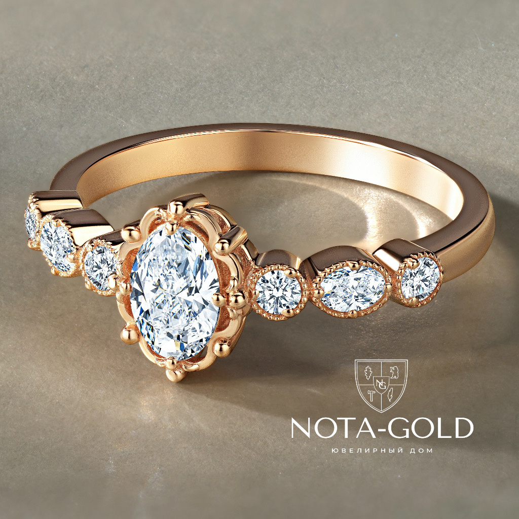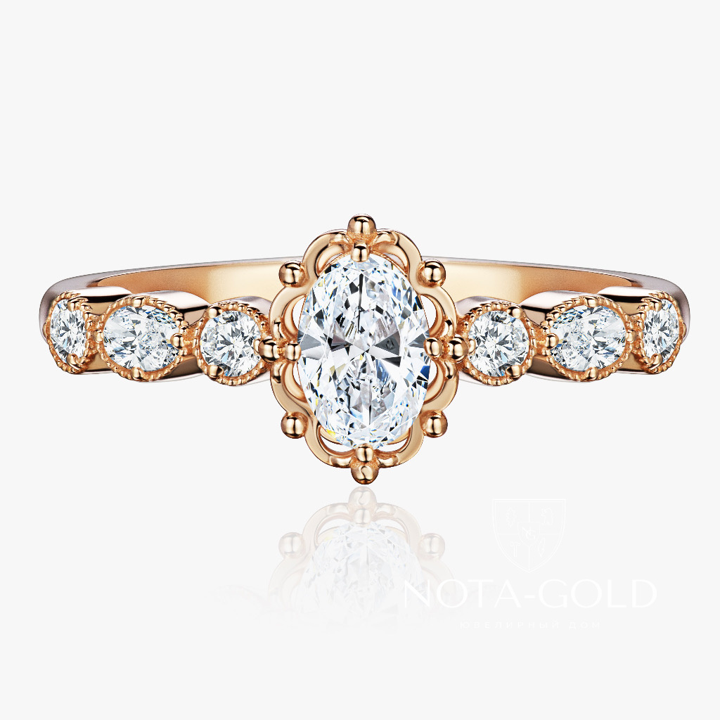 Кольцо в эстетике винтаж с выращенным овальным бриллиантом в розовом золоте (Вес 2,6 гр.)