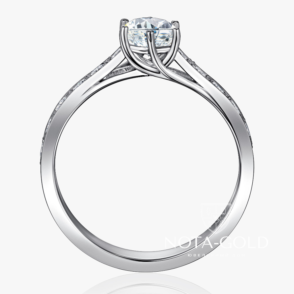 Дорожка из мелких, закрепленных бриллиантов, добавляет сверкающего акцента и придает изделию дополнительный объем.