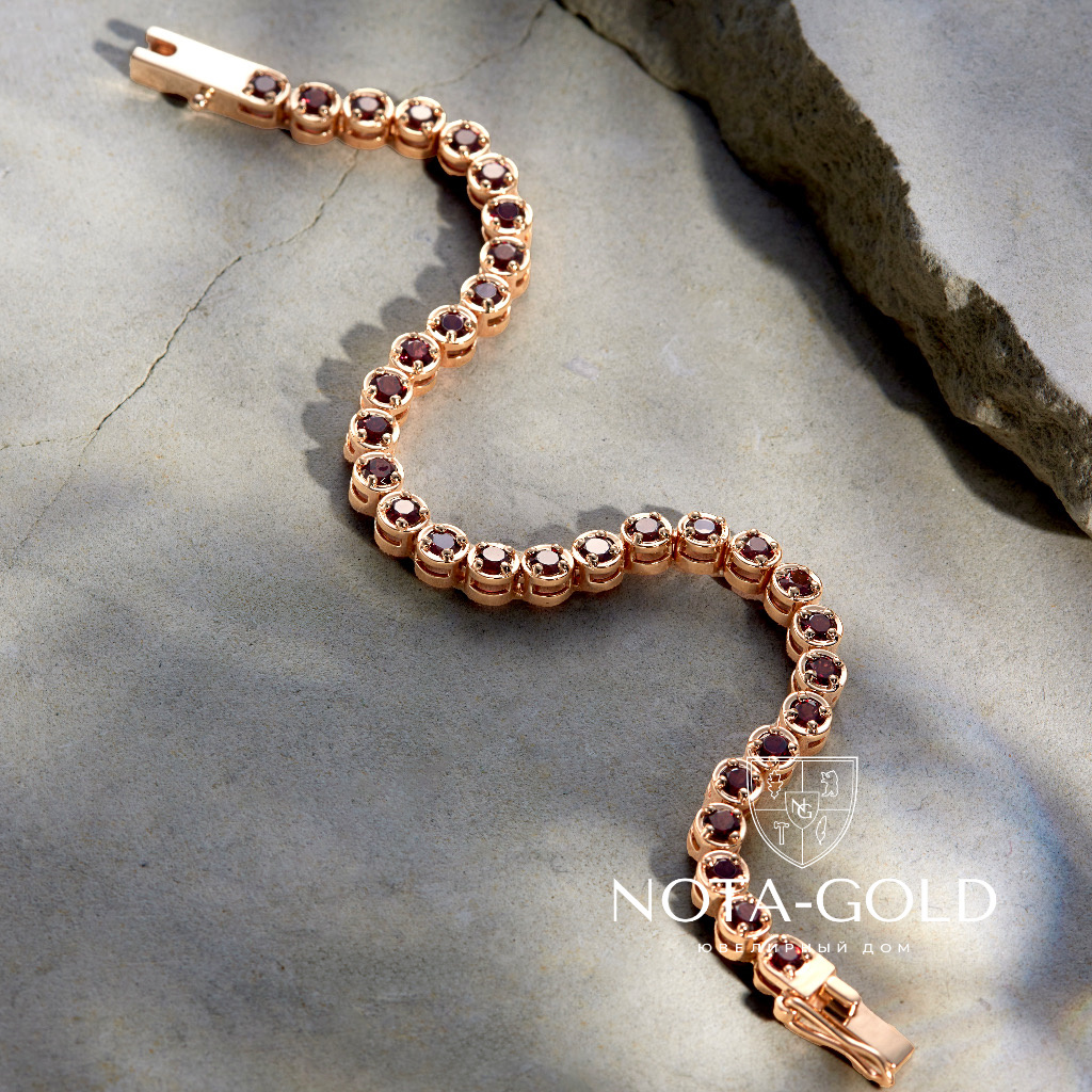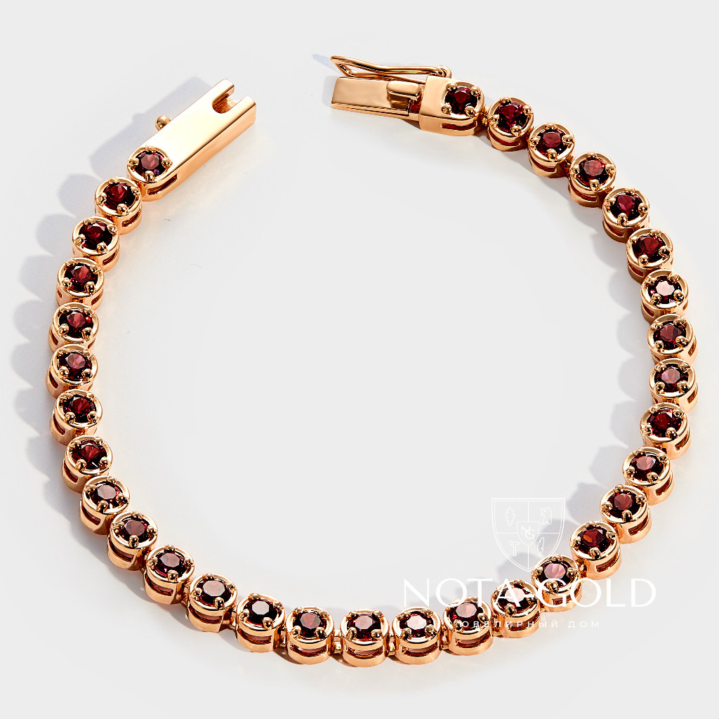 Теннисный браслет из красного золота с гранатами (Вес 16 гр.)