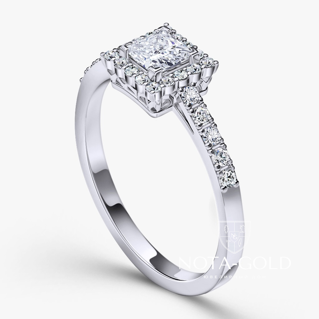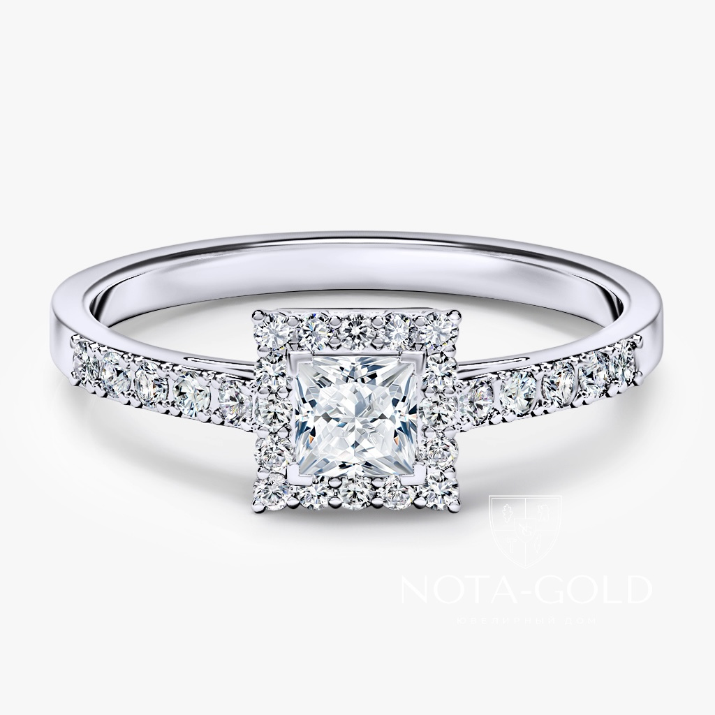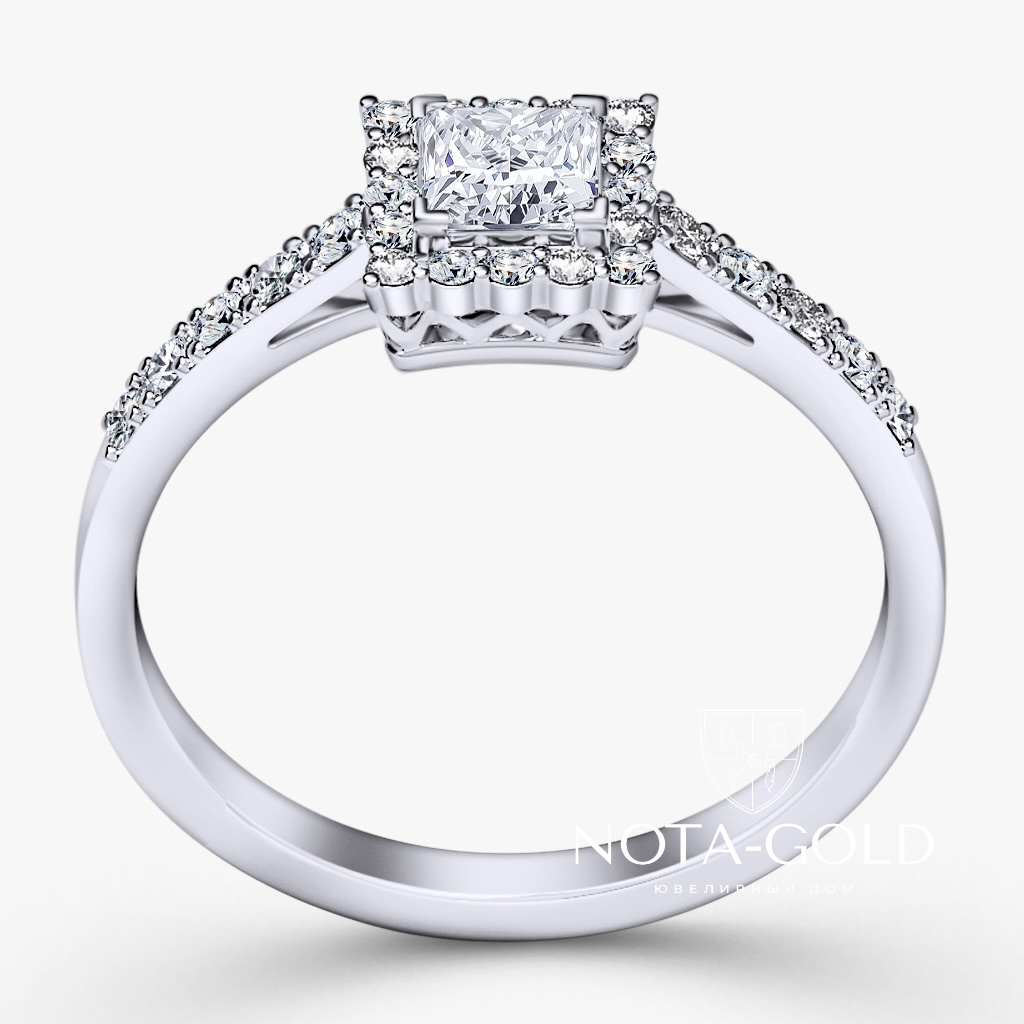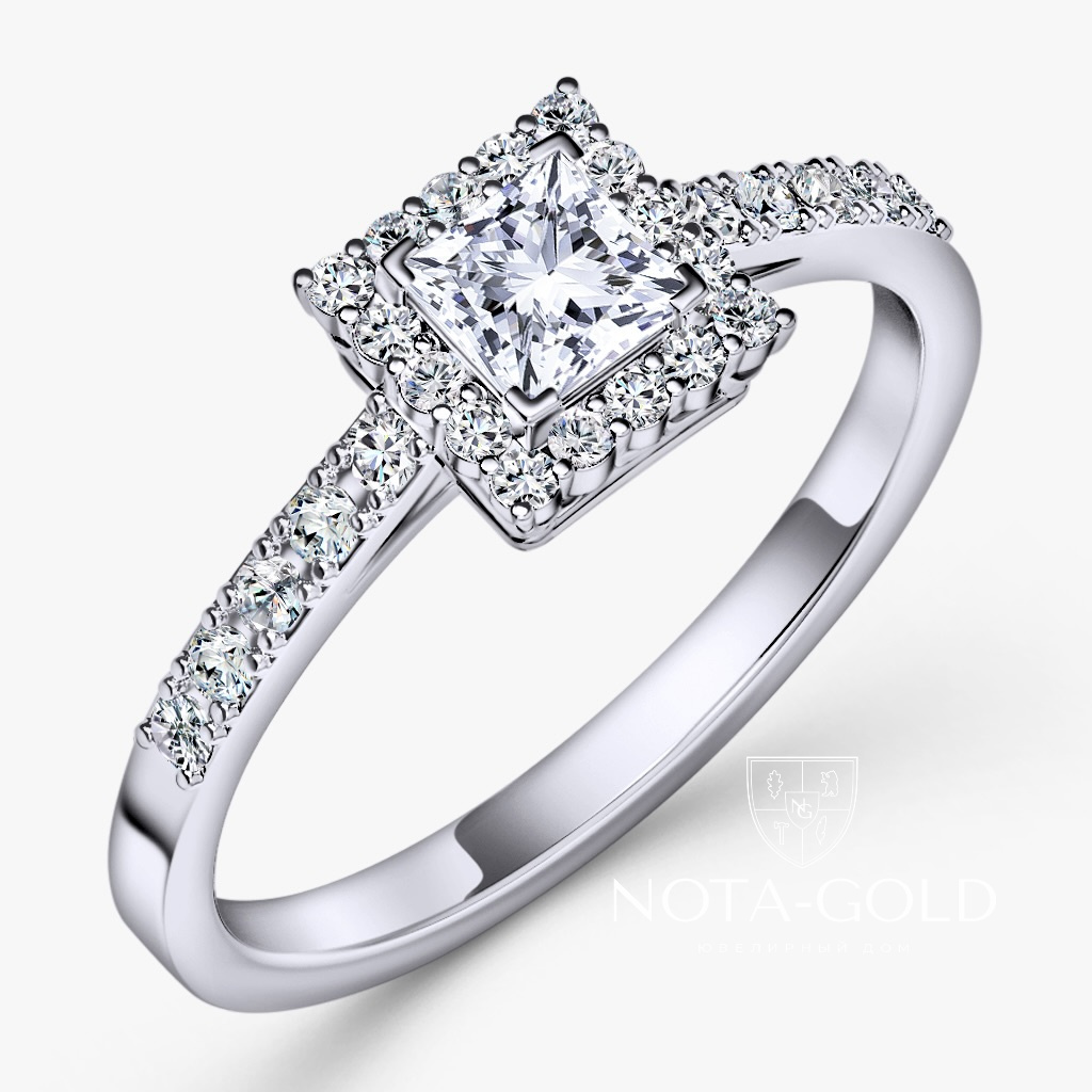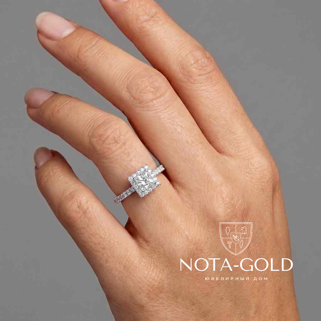 Кольцо с лабораторным бриллиантом Принцесса и дорожкой лабораторных бриллиантов (Вес 2,3 гр.)