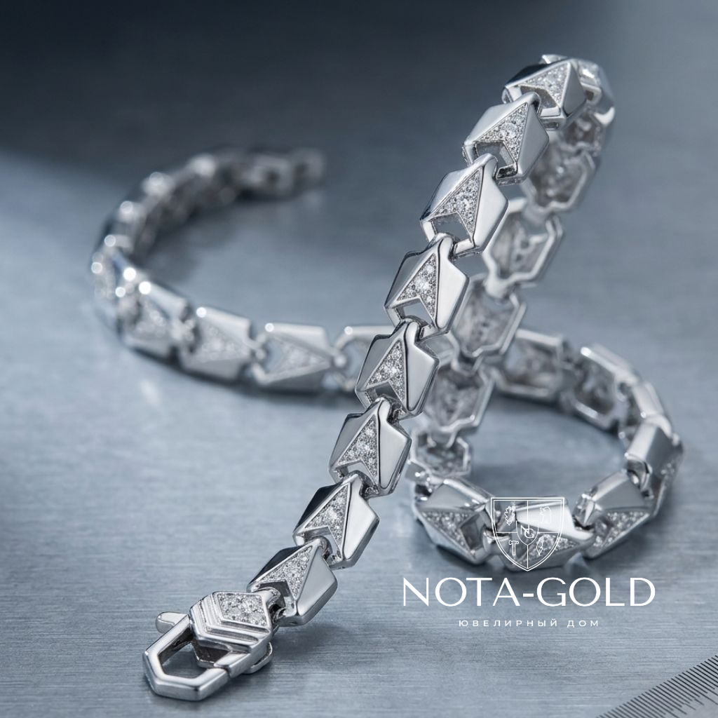 Мужской браслет из платины с бриллиантами (Вес 26 гр.)