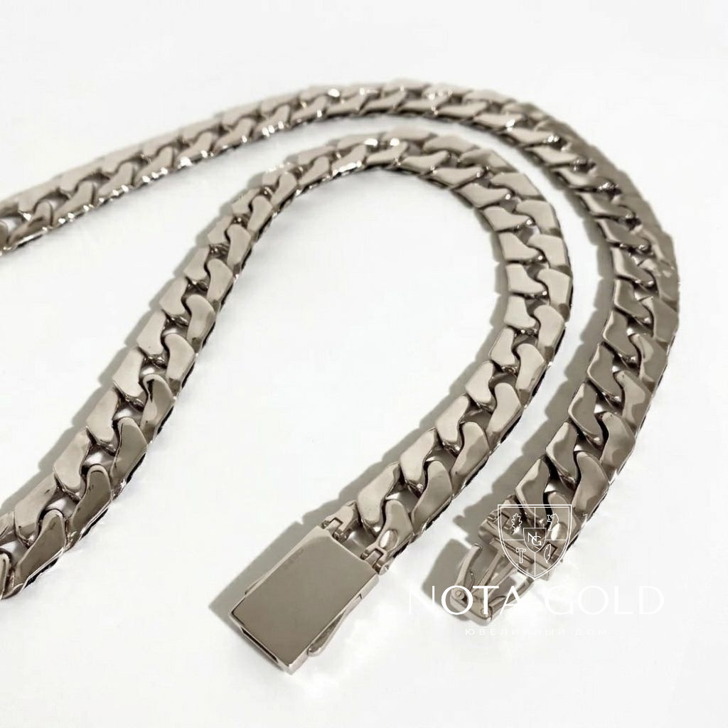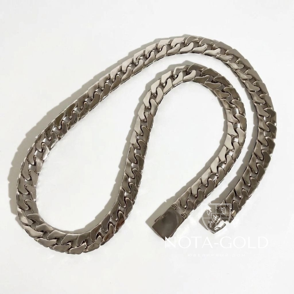 Массивная мужская цепь из платины панцирного плетения (Вес 382 гр.)