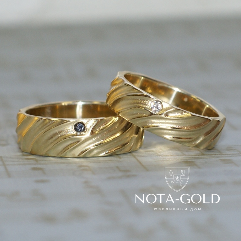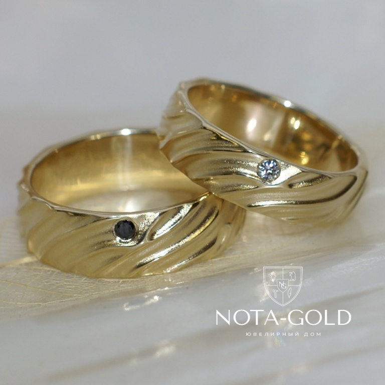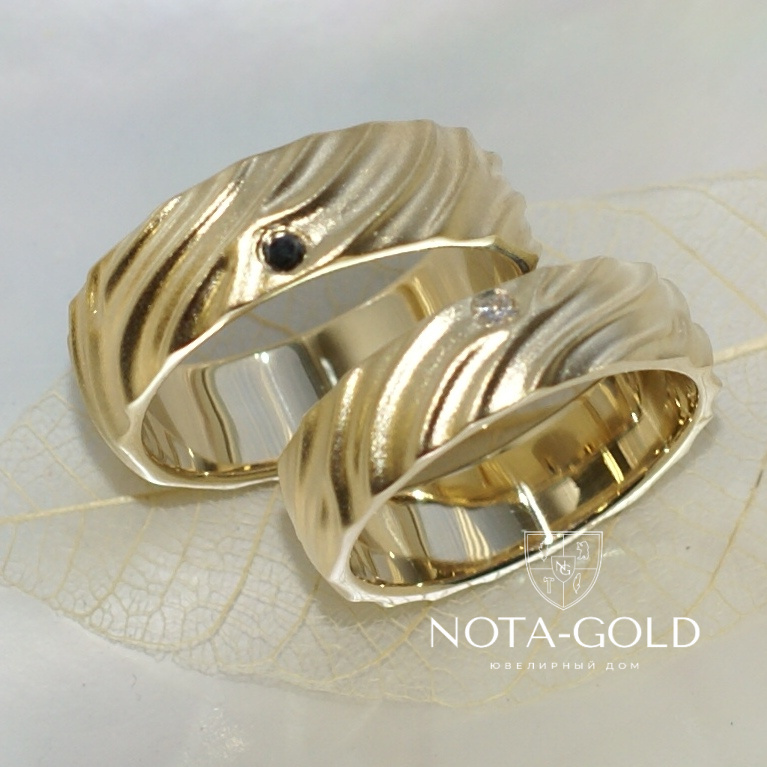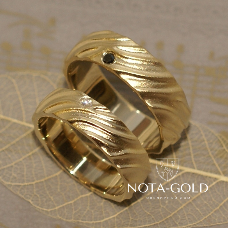 Матовые обручальные кольца с орнаментом в растительном стиле (Вес пары: 14,5 гр.)