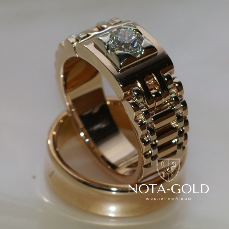 Печатка браслет с большим бриллиантом на заказ (Вес: 16 гр.)