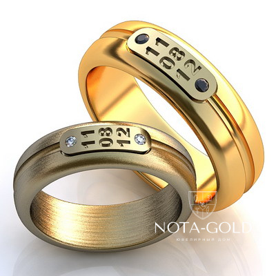 Обручальные кольца с датой свадьбы и бриллиантами на заказ i905 (Вес пары: 9 гр.)