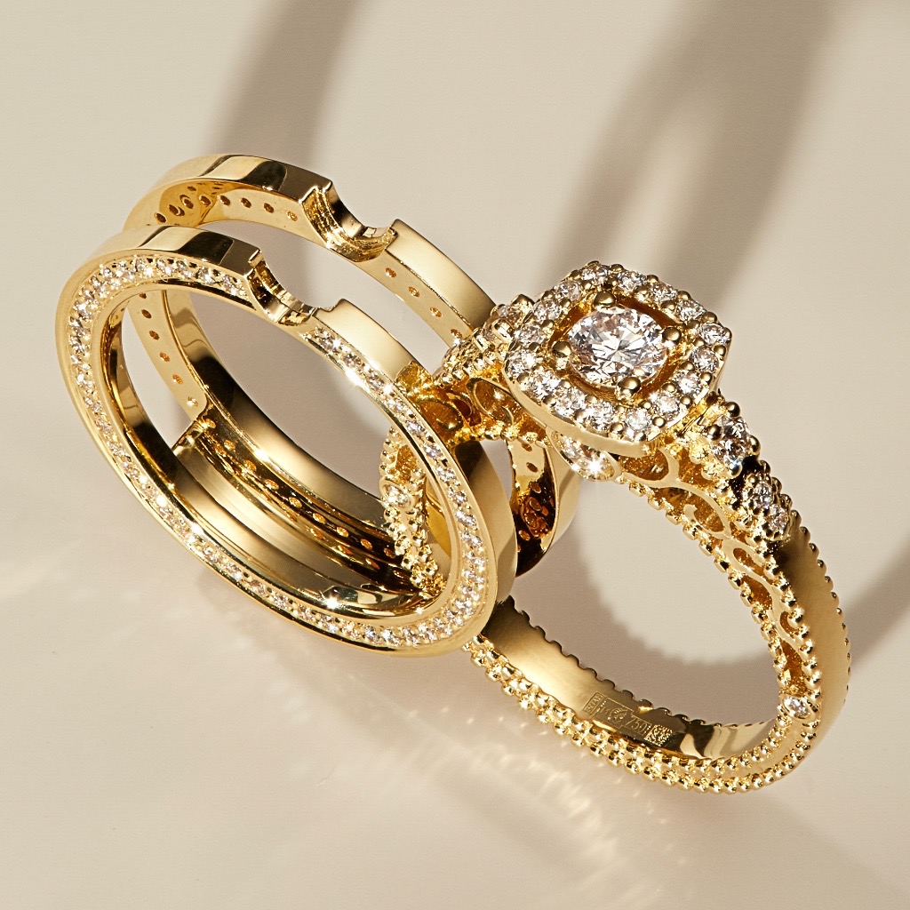 В нашем каталоге — более 2000 моделей. Мы можем адаптировать любую под ваши пожелания: изменить форму, выбрать металл и камни, добавить гравировку.