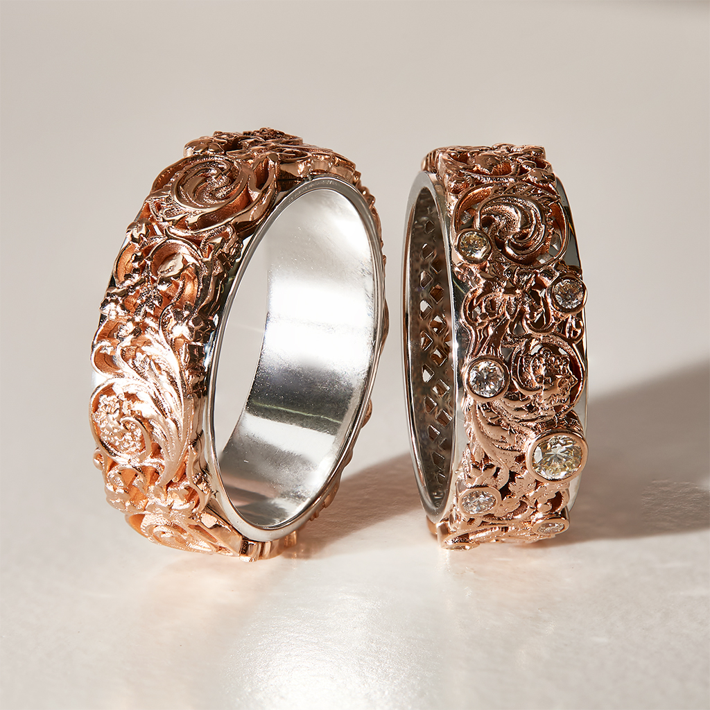 Дизайн - это, пожалуй, основное в ювелирном украшении. Ваши предпочтения идеи, любимые места или хобби, всё то, чем Вы вдохновляетесь, может лечь в основу Ваших обручальных колец.